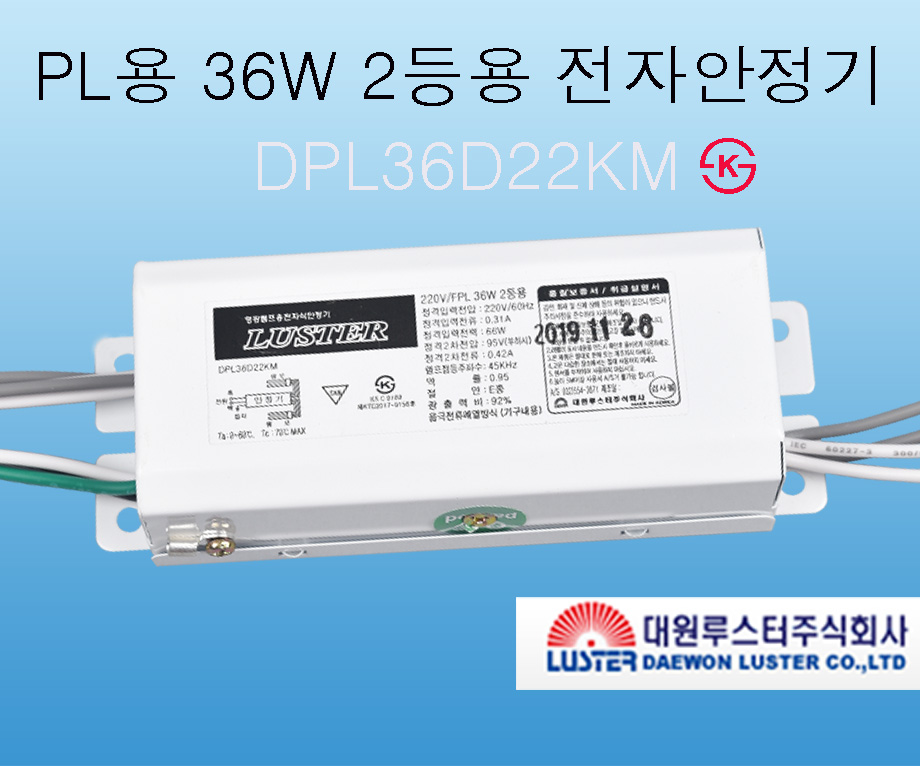 대원루스터 KS 형광등 안정기 FPL 32W 36W 45W 55W 1등용 2등용 슬림형 스..